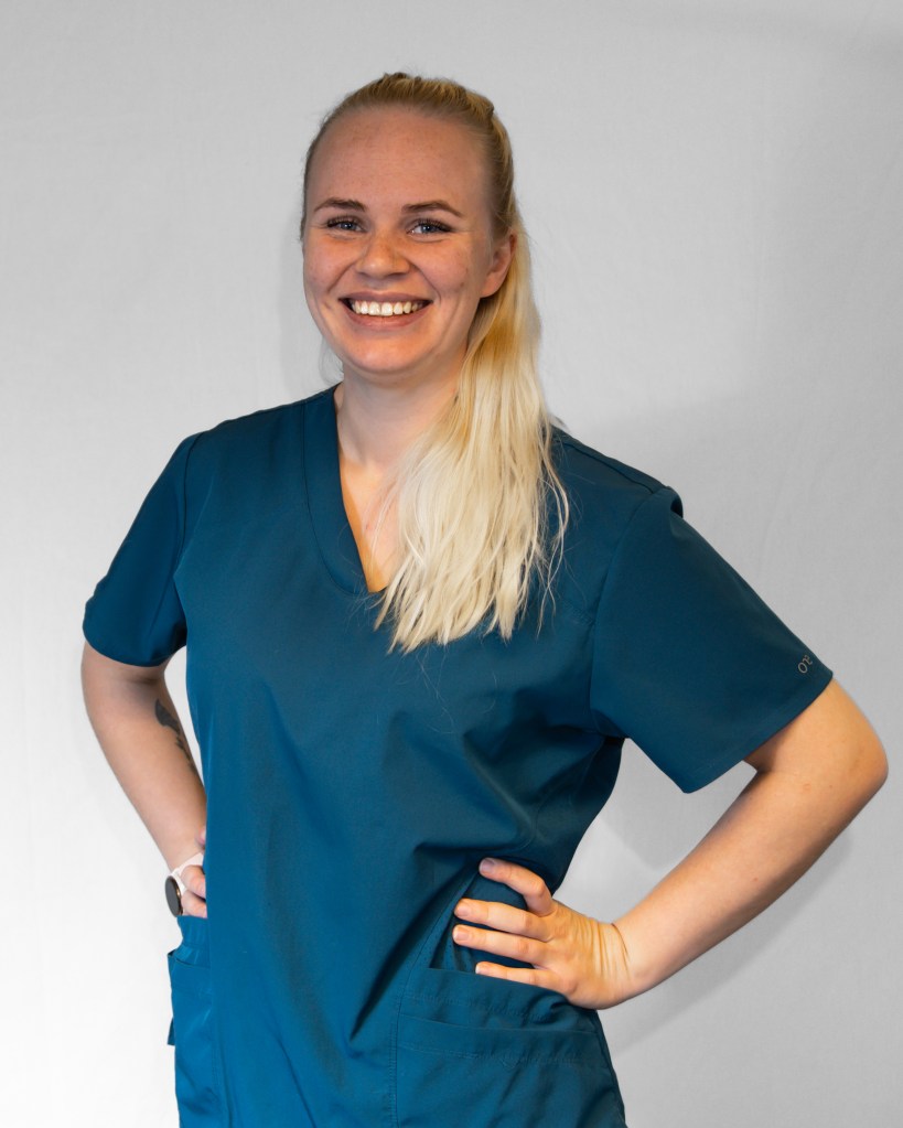 Julie begynte hos oss i mai 2024. Hun er dyrepleier fra Hansenberg. Hjemme har hun hundene Troy og Simbi. Julie er alltid ivrig etter å prøve nye ting på klinikken. Hun har nylig vært på dentalkurs i Dublin.